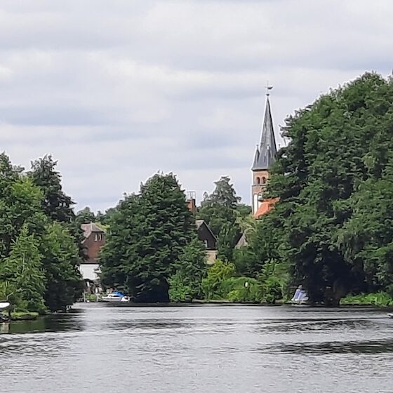 Die Anlage liegt im wasserreichen Köpenick, nahe dem Dorfkern des alten Fischerdorfs Rahnsdorf.